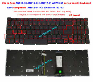 US Backlit Keyboard For Acer Nitro 5 AN517-51 AN517-52 AN715-51 AN515-54 laptop